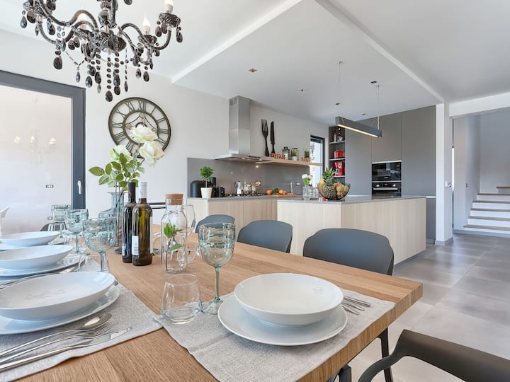 Tar 7 km from Poreč: Beautiful villa "Grande ", 2 storeys, built in 2019. ในหมู่บ้าน Rogovići 2 กม. จากใจกลาง Tar ในตำแหน่งที่เงียบสงบและมีแสงแดดห่างจากทะเล 3.5 กม. ห่างจากชายหาด 3.5 กม. ที่พักส่วนตัว: ขนาด 1'000 ตร.ม. (มีรั้ว) สวนสระว่ายน้ำมุม (9 x 3 เมตรลึก 150 ซม. มีให้บริการตามฤดูกาล: 01 .เมย์. - 15. 1 ต.ค.) พร้อมบันไดภายใน ฝักบัวอาบน้ำกลางแจ้งอ่างน้ำร้อนแบดมินตันระเบียง (18 ตร.ม.) เฟอร์นิเจอร์ในสวนบาร์บีคิว (สไลด์ชิงช้า) ในบ้าน: อินเทอร์เน็ตโต๊ะบิลเลียดโต๊ะฟุตบอลเครื่องปรับอากาศเครื่องซักผ้า ที่จอดรถ (สำหรับ 2 คัน) ที่บ้านในบริเวณที่พัก ร้านค้า 2 กม. ร้านอาหาร 2 กม. ป้ายรถเมล์ 3.2 กม. หาดกรวด 3.5 กม. หาดหิน 3.5 กม. เทนนิส 3.5 กม. สนามขี่ม้า 3.5 กม. เส้นทางเดินจากบ้าน 200 ม. เลนปั่นจักรยาน 250 ม. สนามเด็กเล่น 15 ม. สถานที่ท่องเที่ยวใกล้เคียง Aquapark 25 กม. เจ้าของที่พักไม่รับกลุ่มเยาวชนใดๆ ไม่อนุญาตให้จัดงานเลี้ยงมีให้บริการ: ลูกดอก (รวมอยู่ด้วย)