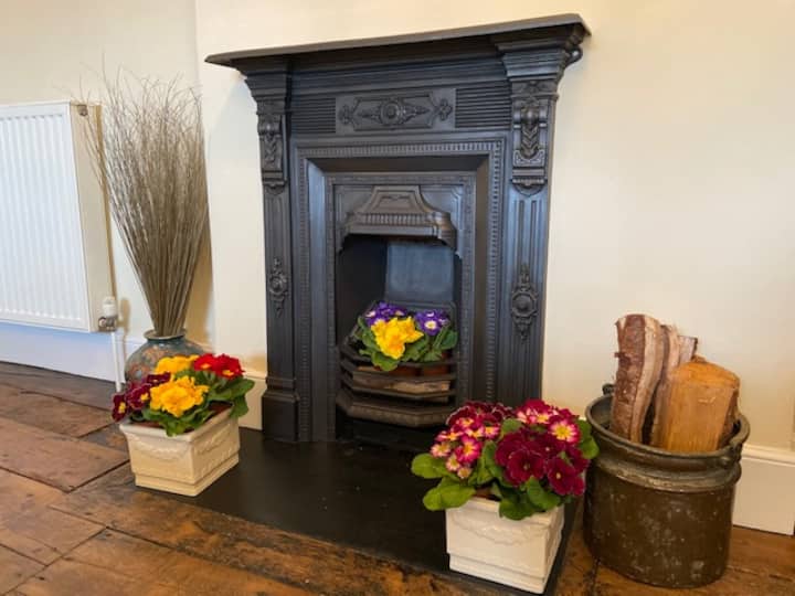 เตียงคิงไซส์พร้อมฝักบัวในตัวบ้านสไตล์คันทรีประวัติศาสตร์