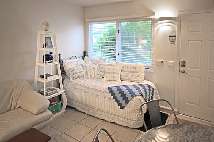 ห้องนอนส่วนตัวของคุณมีเตียงควีนไซส์ที่สะดวกสบาย พื้นที่นั่งเล่นมีโซฟาเบดและโซฟาและมีผ้าห่มผ้าปูที่นอนและหมอนสำรองหลายผืนห้องสวีทจึงสามารถนอนกับผู้ใหญ่ได้สูงสุด 3 คนและเด็กบนโซฟาตัวใดตัวหนึ่ง อนุญาตให้ผู้ใหญ่ 4 คนเข้าพักได้แต่ไม่แนะนำ (หมายเหตุสำคัญ: สิ่งที่ซอฟต์แวร์ AirBnB เรียกว่า "ห้องนอน 2" คือเตียงโซฟาในห้องนั่งเล่นที่แยกประตู)