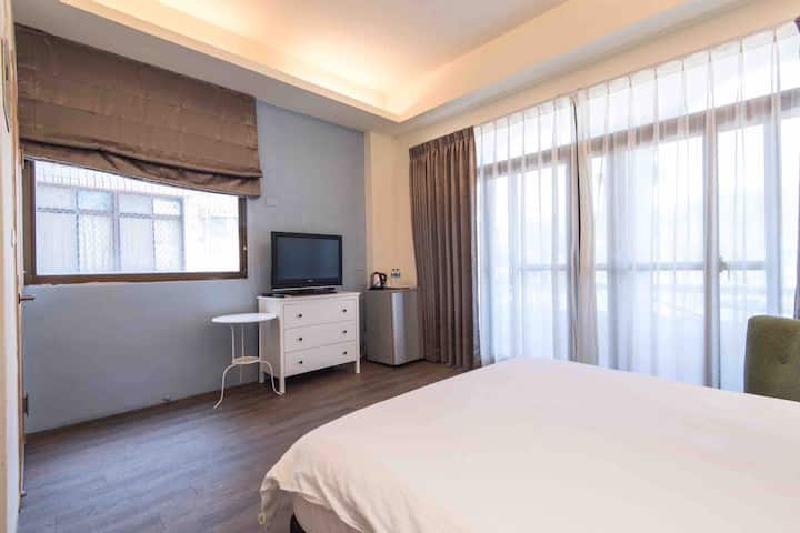 ฮวาเหลียนซีตี้ ~ ห้องพักคู่พร้อมวิวทิวทัศน์ ใกล้สถานีรถไฟ ห้องพักมีหน้าต่างบานใหญ่และระเบียงขนาดใหญ่ อยู่ชั้น 2 ต้องใช้บันได