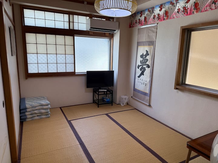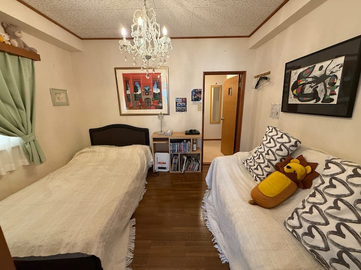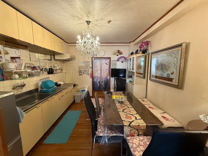 สามห้องนอน ห้องนั่งเล่น ห้องครัว ห้องอาหาร สามารถใช้ได้กับสามครอบครัว 6 นาทีจากสถานี 5 นาทีถึงชายหาด