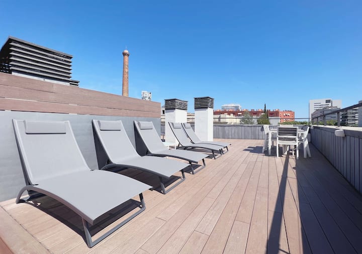 บาร์เซโลนาบีช | อพาร์ทเมนท์ที่มีแสงแดด | ระเบียงบนดาดฟ้า