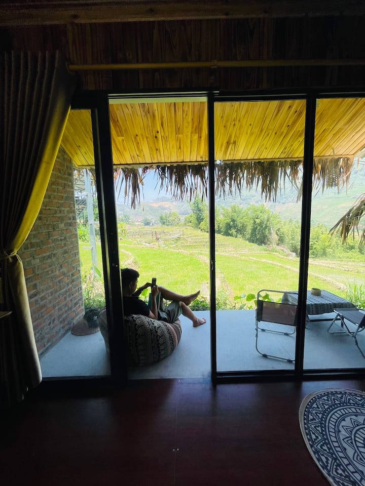 บังกะโลสิ่งแวดล้อมทาแวนคอมลัมพร้อมวิวข้าวแบบขั้นบันได