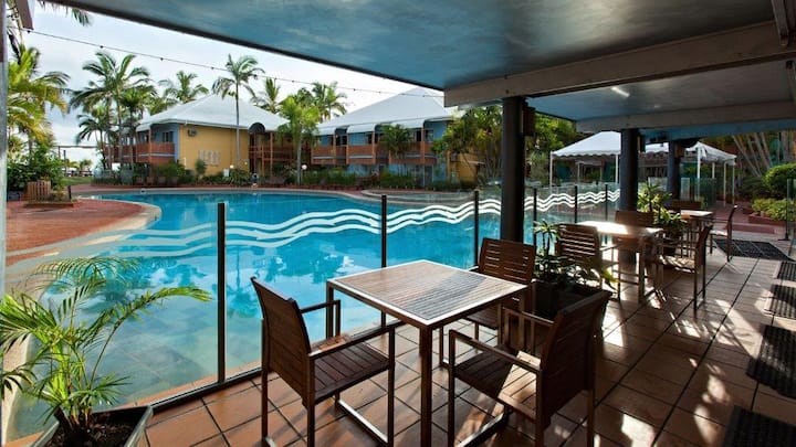 นี่เป็นหนึ่งในที่พักไม่กี่แห่งของย่านนี้ที่มีสระว่ายน้ำ
