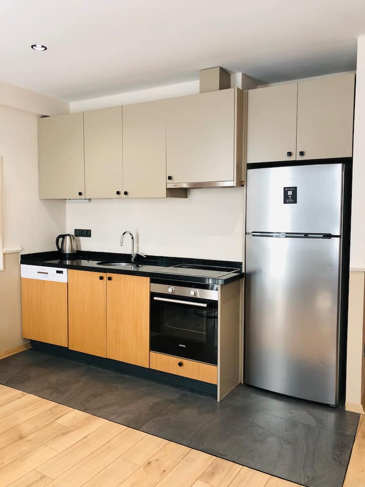 ห้องครัวมีตู้เย็น เตา เตาอบ เครื่องล้างจาน เครื่องซักผ้า กาต้มน้ำ เตารีด ฯลฯ