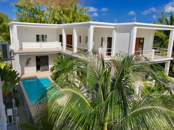 นี่เป็นหนึ่งในที่พักไม่กี่แห่งของย่านนี้ที่มีสระว่ายน้ำ