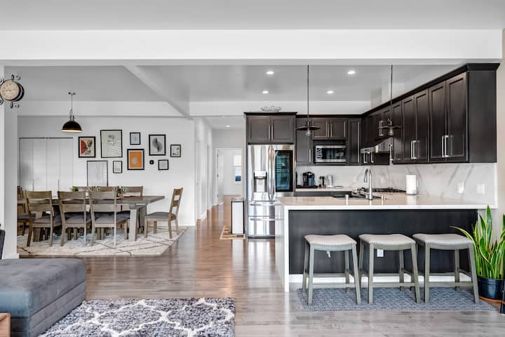 - ห้องครัว/ห้องนั่งเล่น/ห้องรับประทานอาหารแบบเปิดโล่งขนาดใหญ่ สมาร์ททีวีขนาด 55" และเกมกระดาน (ฉันใช้ห้องครัวเมื่อแชร์บ้าน)