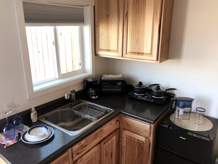 ฉันและเบร็ตต์สามีของฉันตื่นเต้นที่จะได้มีตัวเลือกที่พักใหม่ที่อบอุ่นใน Airbnb! เราอาศัยอยู่ระหว่างเคบินนอกกริดของเรานอกแกลลัปและไลบีเรีย แอฟริกาตะวันตกในช่วงไม่กี่ปีที่ผ่านมา ผ่านงานของฉันในฐานะแพทย์ที่มุ่งเน้นไปที่การแพทย์ทางสังคมและการดูแลสุขภาพที่เท่าเทียมกันสำหรับทุกคน เราเพิ่งซื้อบ้านหลังเล็กทันสมัยหลังนี้ในแกลลัปเมื่อเร็วๆ นี้ ตอนนี้ฉันทำงานเต็มเวลาในพื้นที่ ห้องชุดสำหรับผู้เข้าพักเป็นที่นิยมใน Airbnb กับเจ้าของเดิมและเราตื่นเต้นที่จะดำเนินการต่อ!