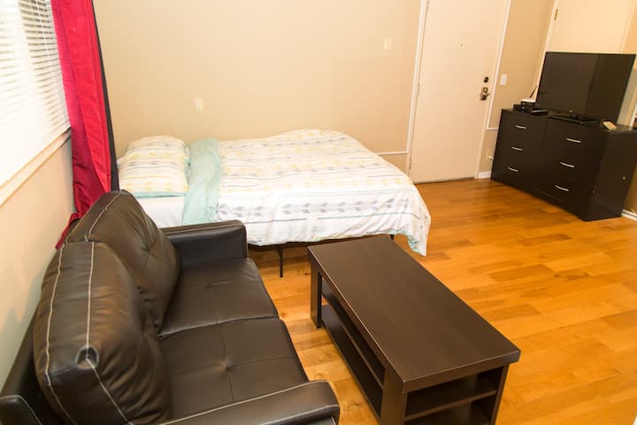 ห้องพักมีพื้นไม้เนื้อแข็งและตกแต่งด้วยเฟอร์นิเจอร์ใหม่เอี่ยมทีวีจอแบน WIFI ฟรีเตียงคู่ (นอนได้ 2 คนสบายๆ) พร้อมวัสดุเครื่องนอนใหม่และสะอาดทั้งหมดผ้าปูสะอาดหมอนพร้อมผ้าคลุมและผ้าห่มขาตั้งกลางคืนและตู้เสื้อผ้า