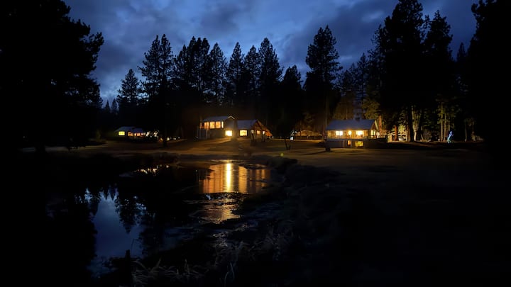 เคบิน Airbnb ของเราเต็มไปด้วยแสงธรรมชาติและตั้งอยู่ริมฝั่งแม่น้ำลิตเติ้ลเดชูทส์ในเซ็นทรัลออริกอนที่สวยงาม