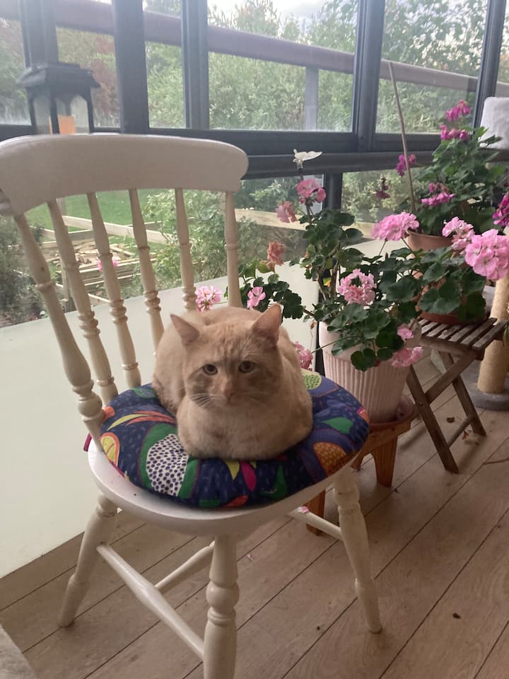 ตอนนี้ฉันให้เช่าเป็นเดือน มีอพาร์ทเมนท์ชั้นล่างพร้อมสวน มีแมว 2 ตัว