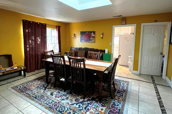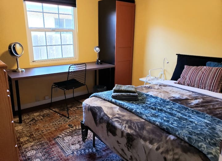 เราพยายามอย่างเต็มที่เพื่อสร้างบ้านที่สะอาด สะดวกสบาย และสะดวกสำหรับผู้ที่มาเยือนพื้นที่ในราคาประหยัด คุณมีห้องส่วนตัวพร้อมพื้นที่ใช้สอยร่วมกัน พื้นที่ส่วนรวมคือห้องครัว ห้องนั่งเล่น ห้องทานอาหาร ห้องซักรีด ห้องน้ำ 1.5 ห้อง และบริเวณสวนหลังบ้าน
