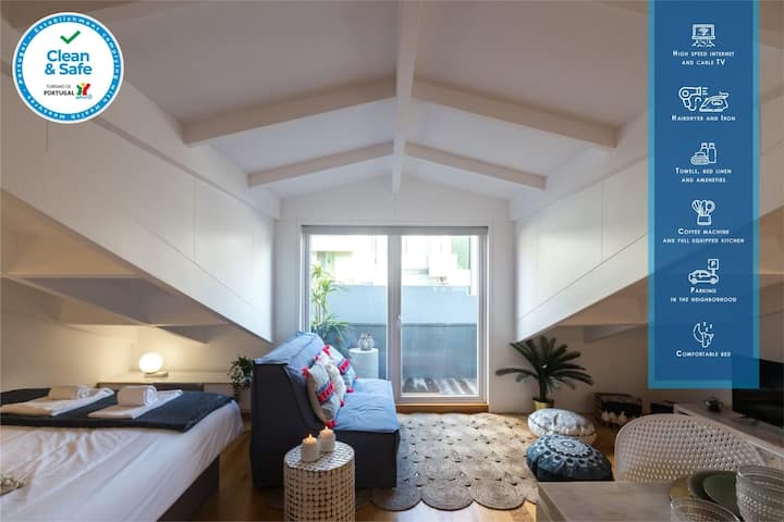 ลอฟท์สวยๆ พร้อมเครื่องปรับอากาศ ระเบียง ใจกลางเมืองใกล้รถไฟใต้ดิน