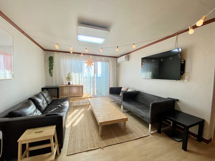 #F4 อิแทวอนลูฟท็อปบาร์บีคิวสเตย์ (บาร์บีคิว, ลูฟท็อป = อุปกรณ์เสริม) ป้องกันโรคติดต่อได้