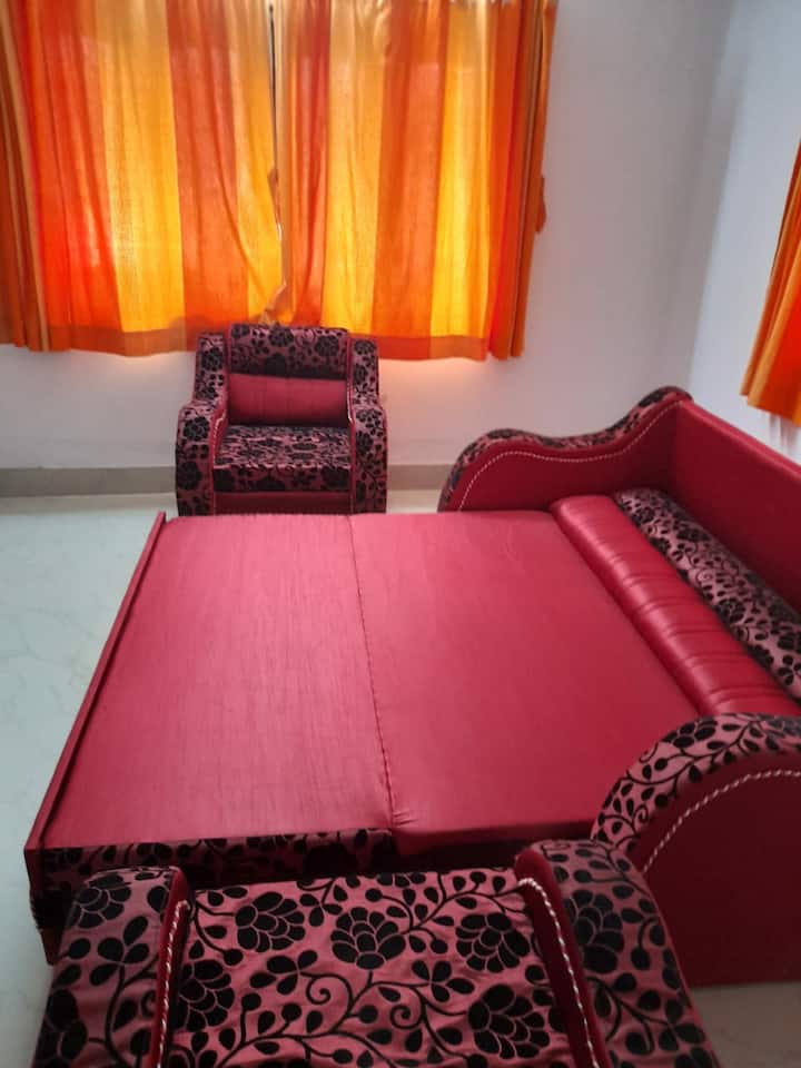 1 เตียงควีน 1 เตียงโซฟา 1 โซฟา 1 ฟูกบนพื้น