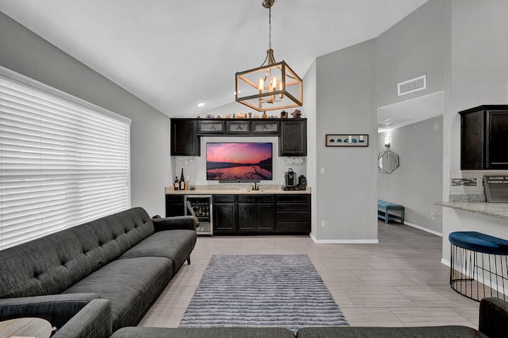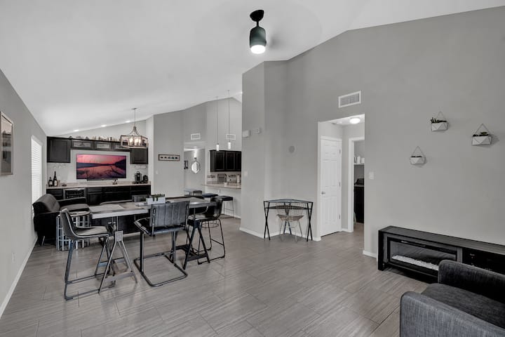 เพลิดเพลินกับความสะดวกสบายของบ้าน 3 ห้องนอน 3 ห้องน้ำขนาด 1400 ตารางฟุตที่กว้างขวางของเรา ด้วยห้องนอนแต่ละห้องที่ตั้งอยู่บนปีกของบ้านรูปแบบเปิดโล่งนี้ช่วยให้ผู้เข้าพักได้สูงสุด 7 คน * ความหรูหราของความสะดวกสบายพื้นที่และความเป็นส่วนตัวที่ชวนให้นึกถึง "บ้าน"