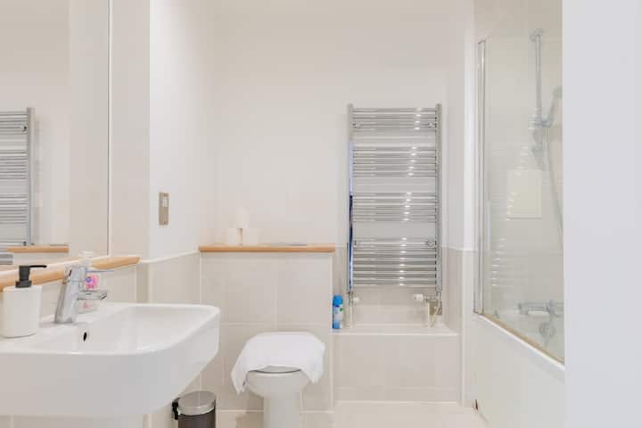 ออกแบบโดยคำนึงถึงความสะดวกสบายของคุณทำให้ห้องน้ำของที่พักสดชื่นขึ้นซึ่งประดับประดาไปด้วยกระเบื้องสีครีมที่ผ่อนคลายและผนังสีขาวที่สร้างบรรยากาศที่ทันสมัยและน่าอยู่ ด้วยอ่างอาบน้ำที่มีชีวิตชีวาและหัวฝักบัวที่แนบมาคุณมีตัวเลือกในการแช่น้ำนานๆหรือล้างอย่างรวดเร็วเพื่อเตรียมพร้อมหรือล้างตัวในวันที่ห่างออกไป นอกจากนี้ยังมีโถสุขภัณฑ์และพื้นที่อ่างล้างหน้าพร้อมกระจกขนาดใหญ่ช่วยให้คุณเตรียมพร้อมสำหรับการผจญภัยในลอนดอน สุดท้ายนี้เพลิดเพลินไปกับของใช้ในห้องน้ำและผ้าเช็ดตัวที่มีให้ฟรีซึ่งหมายความว่าคุณไม่ต้องกังวลอะไรเลย!