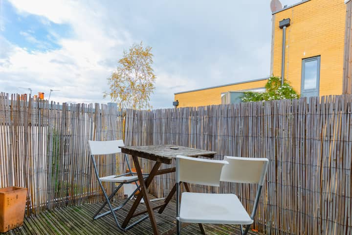 ก้าวออกไปที่ระเบียงส่วนตัวที่มีเสน่ห์ซึ่งเป็นสถานที่พักผ่อนที่เหมาะสำหรับช่วงเวลาที่สดชื่นและผ่อนคลายหลังจากออกไปข้างนอกมาทั้งวัน นั่งที่โต๊ะและเก้าอี้ที่จัดเตรียมไว้รับประทานอาหารกลางแจ้งร่วมกันหรือใช้พื้นที่กลางแจ้งเพื่ออาบแดด นอกจากนี้ยังมีบาร์บีคิวให้เพื่อให้คุณสามารถปรุงอาหารในช่วงฤดูร้อนเมื่อสวนกำลังออกดอกบานสะพรั่งด้วยต้นไม้และดอกไม้โดยรอบ ที่พักเงียบสงบแห่งนี้เหมาะสำหรับการพักผ่อนอย่างสงบหลังจากวันที่วุ่นวายในลอนดอนที่วุ่นวาย
