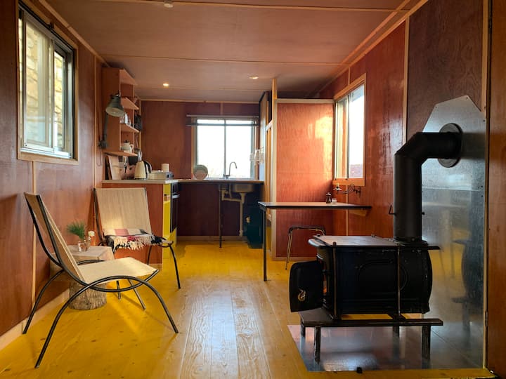 ตู้คอนเทนเนอร์ที่ปรับเป็นที่พักสุดอบอุ่นบนพื้นที่เพาะปลูกขนาด 8 เอเคอร์บนเกาะแองเกิลซีย์ เหมาะสำหรับการผจญภัยในสโนว์โดเนียหรือธรรมชาติที่สวยงามของเกาะ