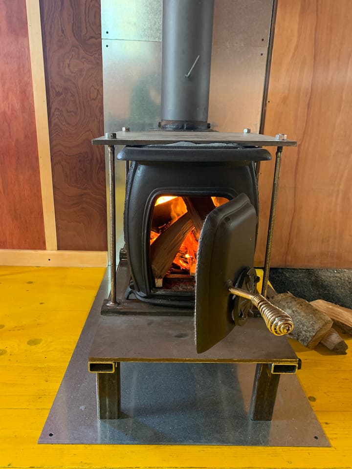 ที่พักไม้สร้างด้วยมือพร้อมเตาเผาไม้ที่อบอุ่นบนพื้นที่เพาะปลูกของครอบครัวที่เงียบสงบมาก