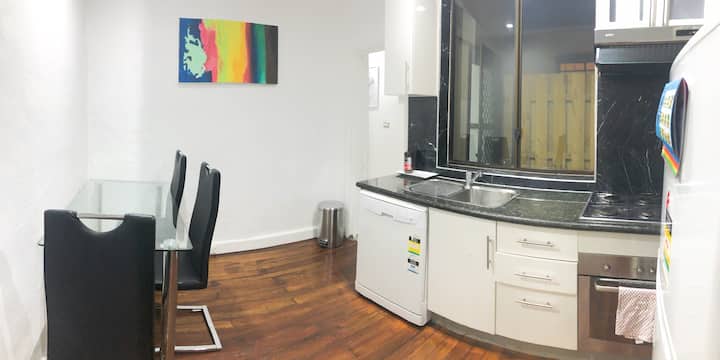 ที่พักเหมาะสำหรับนักเดินทางเพื่อธุรกิจและครอบครัวที่มีเด็กๆ ทางเข้าส่วนตัวและปลอดภัยห้องครัวที่มีอุปกรณ์ครบครันพร้อมตู้เย็นเตาอบแก๊สไมโครเวฟเครื่องล้างจานกาต้มน้ำเครื่องปิ้งขนมปังกระทะหม้อหุงต้มหม้อทำอาหารมีดช้อนส้อมช้อนส้อมแก้วแก้วและถ้วยกาแฟ/ชาและอื่นๆอีกมากมาย... เพื่อให้คุณสามารถทำอาหารเช้าสดใหม่และอาหารเพื่อสุขภาพได้ ถนนแฮร์ริสพาร์คอยู่ใกล้ๆมีร้านอาหารมากมายหรือคุณอาจเดินไปโรงแรมโรสฮิลล์ (ผับออสซี่ทั่วไป) เพื่อรับประทานอาหารสไตล์ยุโรปและเครื่องดื่มออสซี่ในราคาไม่แพง ซูเปอร์มาร์เก็ตวูลเวิร์ธในโรสฮิลล์เปิดให้บริการ 7.00 น. - 22.00 น. ทุกวันแม้ว่าเราจะจัดเตรียมอุปกรณ์ทำอาหารไว้ให้คุณเช่นน้ำมันเกลือพริกไทยน้ำตาลนมถุงชากาแฟก๋วยเตี๋ยว/สปาเก็ตตี้และข้าวน้ำขวดแร่... เพื่อความสะดวกของคุณเมื่อมาถึง