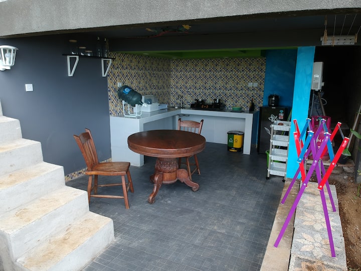 ร้านอาหารเป็นสถานที่ทำงานทั่วไปสำหรับบังกะโลทั้งหมดที่เรามี เราเพิ่งเพิ่มหน้าจอขนาดใหญ่และโปรเจคเตอร์เพื่อช่วยคุณในการนำเสนองาน