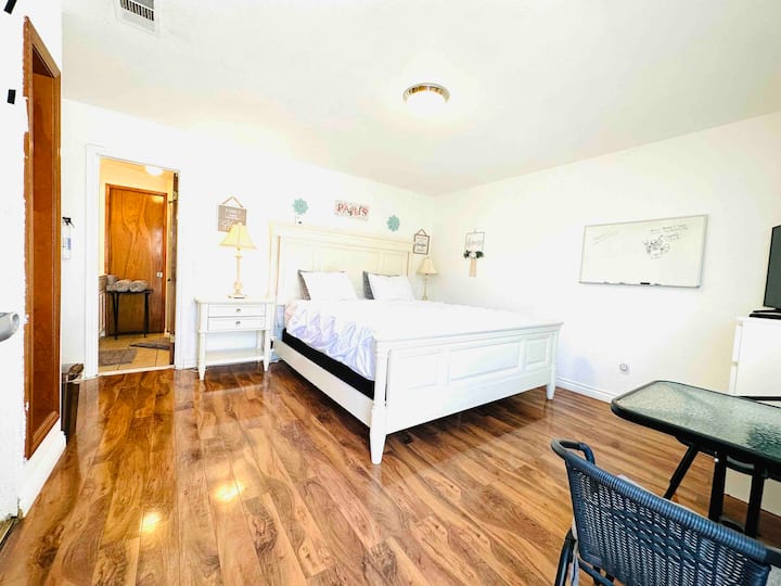 ห้องนอนใหญ่พร้อมทางเข้าและห้องน้ำส่วนตัว