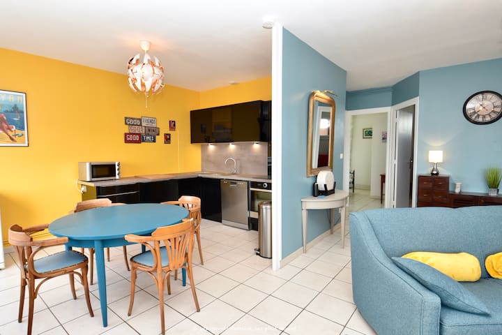 อพาร์ทเมนท์ (ประเภท 2 *) ข้ามพื้นที่ 63 ตารางเมตรหันหน้าไปทางทิศตะวันตกเฉียงใต้ได้รับการปรับปรุงใหม่ทั้งหมดในจิตวิญญาณของวินเทจตั้งอยู่ใจกลางเมืองติดกับสถานีรถไฟและห่างจากชายหาด 300 เมตรบน Place Gantier ที่มีชื่อเสียงที่สร้างขึ้นหลังสงครามระหว่างปี 56 ถึง 60 อพาร์ทเมนท์อยู่บนชั้น 3 ของอาคารและรองรับได้สูงสุด 6 คน