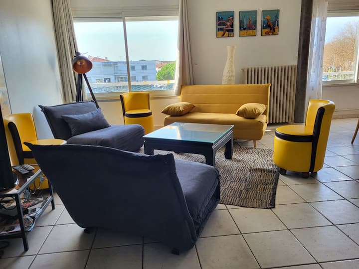 ด้านห้องนั่งเล่นของห้องนั่งเล่นสามารถมองเห็นวิวที่สวยงามของ Place Gantier พร้อมกระจกสองชั้นที่ปิดกั้นการจราจรและสถานีรถไฟได้อย่างสมบูรณ์ เตียงโซฟามีเตียงเสริม 2 เตียง ด้านครัวมีวิวเดียวกันโต๊ะรับประทานอาหารห้องครัวที่ได้รับการปรับปรุงใหม่ทั้งหมดและเครื่องใช้ในครัวเรือนทั้งหมด (เครื่องล้างจานไมโครเวฟเครื่องชงกาแฟ Senseo เครื่องล้างจานตู้เย็น/ตู้แช่แข็ง...)