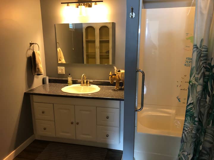 ห้องนอนและห้องน้ำสะอาดขนาดใหญ่ ทางเข้าส่วนตัว