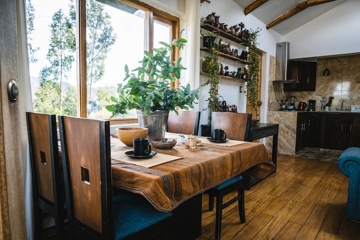 ผ่อนคลายในแฟลตที่มีสิ่งอำนวยความสะดวกครบครันของเราพร้อมวิวภูเขาและสวน ตื่นขึ้นมาพร้อมกับความอบอุ่นและเสียงนกร้อง สงบและเงียบสงบของเทือกเขาแอนดีสในสวนของเราเหมาะสำหรับโยคะ อ่านหนังสือ เพลิดเพลินกับอาหารกลางวันกลางแจ้ง