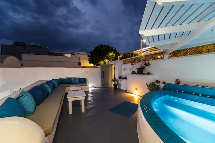 - บ้านพักตากอากาศที่มีที่นั่งกลางแจ้งใน ซันโตรินี