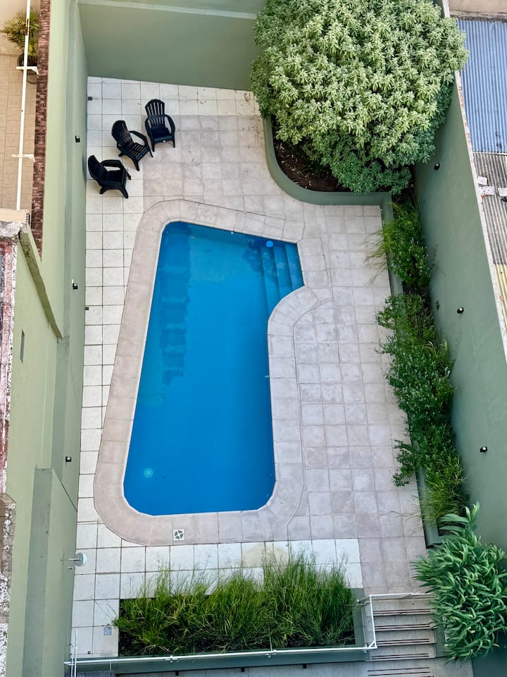 นี่เป็นหนึ่งในที่พักไม่กี่แห่งของย่านนี้ที่มีสระว่ายน้ำ