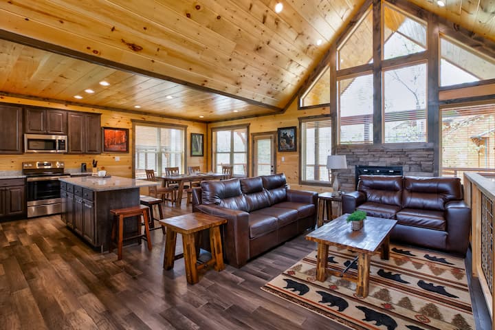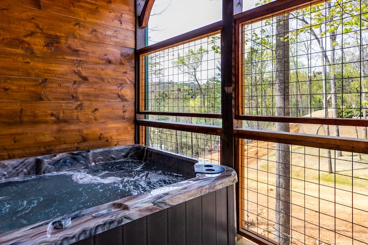 การพักผ่อนสุดหรูสำหรับครอบครัว: อ่างน้ำร้อน หลุมก่อไฟ วิวหมี