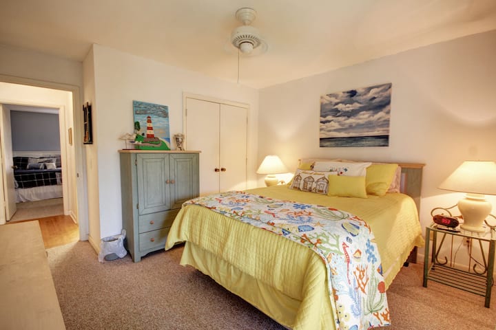 ห้องนอนใหญ่มีโทรทัศน์เตียงคิงไซส์ห้องน้ำส่วนตัวและประตูไปยังดาดฟ้ากลางแจ้ง ห้องนอนที่สองมีเตียงขนาดควีนไซส์ทีวีและมีประตูกระจกบานเลื่อนไปยังระเบียงที่มีการคัดกรอง ห้องที่สามมีเตียงคู่ 2 เตียงสำหรับพื้นที่นอนเสริมและทีวี มีห้องอาบน้ำรวมสำหรับห้องนอน 2 ห้องนี้ ด้วยพื้นที่ที่อบอุ่นและน่าอยู่ทั้งภายในและภายนอกบ้านหลังนี้จึงเป็นตัวเลือกที่น่ารักสำหรับการพักผ่อนริมชายหาดที่ผ่อนคลาย!