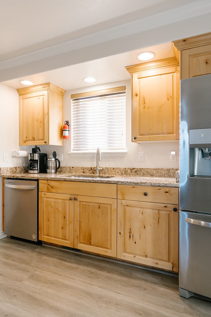 ครัวที่ยอดเยี่ยมมีเคาน์เตอร์และเครื่องใช้สแตนเลสที่ปรับปรุงใหม่รวมถึงเตาอบและเครื่องล้างจานใหม่เก้าอี้บาร์แบบสวิง 4 ตัวมีเคาน์เตอร์รับประทานอาหารที่ง่ายหรือเลือกใช้พื้นที่รับประทานอาหารที่สวยงามพร้อมโต๊ะไม้น่ารัก