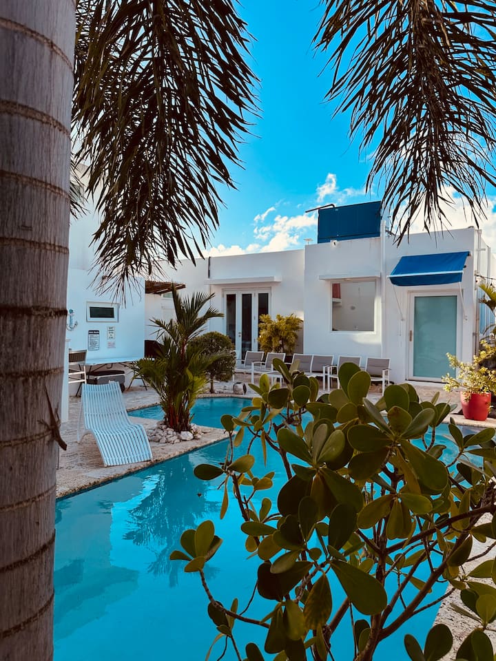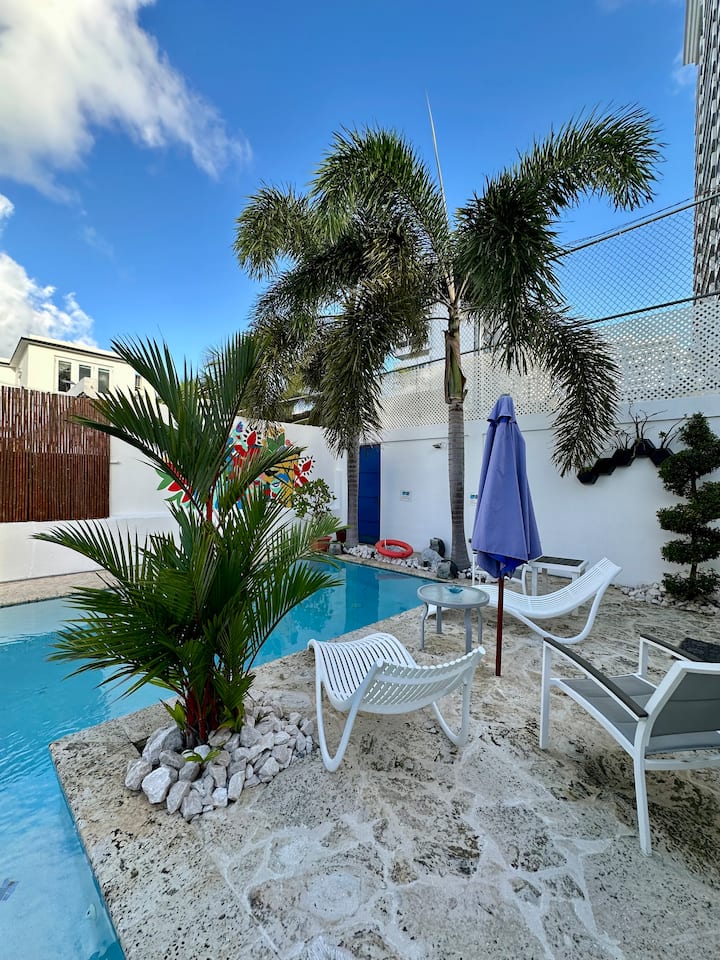 นี่เป็นหนึ่งในที่พักไม่กี่แห่งของย่านนี้ที่มีสระว่ายน้ำ