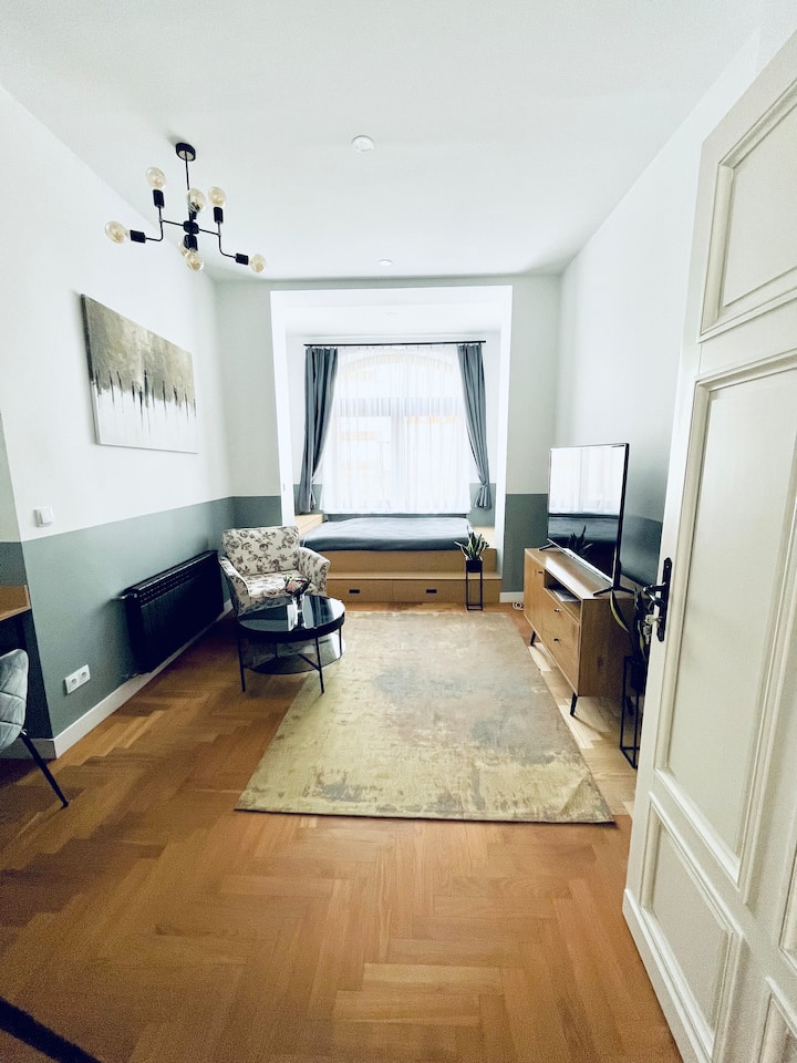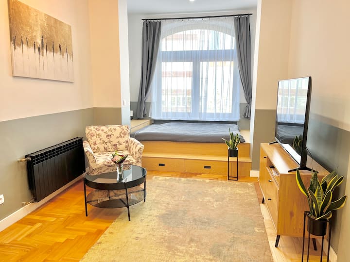 อพาร์ทเมนท์สีเทาใจกลางคาโตวิซ
