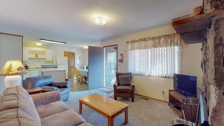เคบินกว้างขวางนี้เป็นส่วนหนึ่งของดูเพล็กซ์เชิญผู้เข้าพักได้สูงสุด 8 คน พร้อมเตียงควีนไซส์และเตียงคู่และเตียงแฝด 2 หลังในอีกห้องพร้อมโซฟาปรับนอนขนาดใหญ่ เตาผิงแบบเผาฟืนเป็นเวทีสำหรับช่วงเย็นที่อบอุ่นสร้างบรรยากาศที่อบอุ่นที่เติมเต็มความสะดวกสบายของห้องโดยสาร ห้องครัวที่มีอุปกรณ์ครบครันเพียงนำอาหารกาแฟและเครื่องปรุง/เครื่องเทศมาเองแล้วปล่อยให้ที่นี่กลายเป็นศูนย์กลางของคุณสำหรับช่วงเวลาที่ใช้ร่วมกัน ห้องน้ำมีอ่างอาบน้ำ/ฝักบัวและโต๊ะเครื่องแป้งแยกต่างหาก