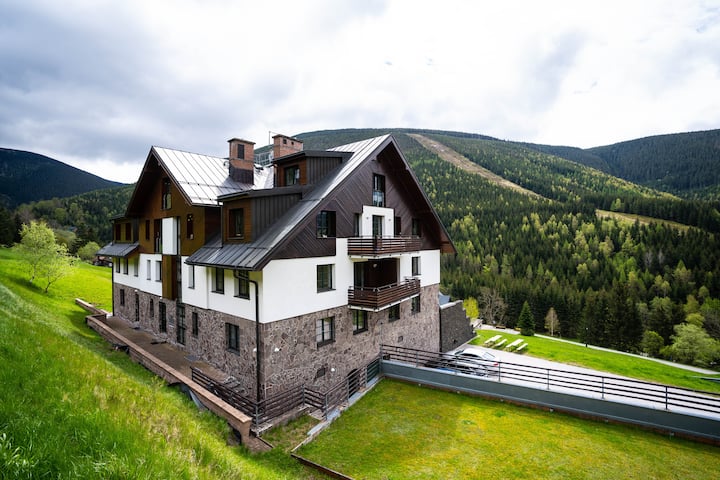 ห้องนอนส่วนตัว ใน เซอร์วิสอพาร์ทเมนท์ ใน Špindlerův Mlýn เช็ก