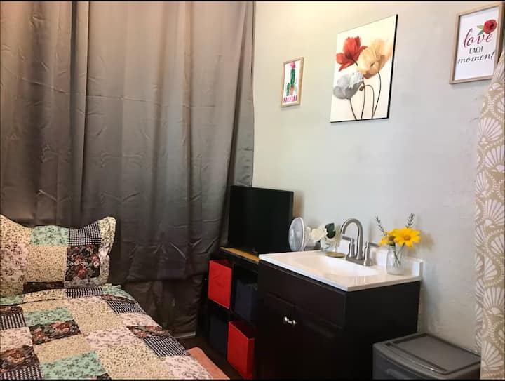 ห้องขนาด 13x6 ฟุตนี้เป็นพื้นที่พักด่วนที่ได้รับการดัดแปลงซึ่งเป็นห้องอเนกประสงค์ มีเครื่องใช้ไฟฟ้า (เครื่องซักผ้า/เครื่องอบผ้า/เครื่องทำน้ำอุ่น) ในห้อง อุณหภูมิเฉลี่ย 74 -78 องศาเพราะขนาดของห้อง