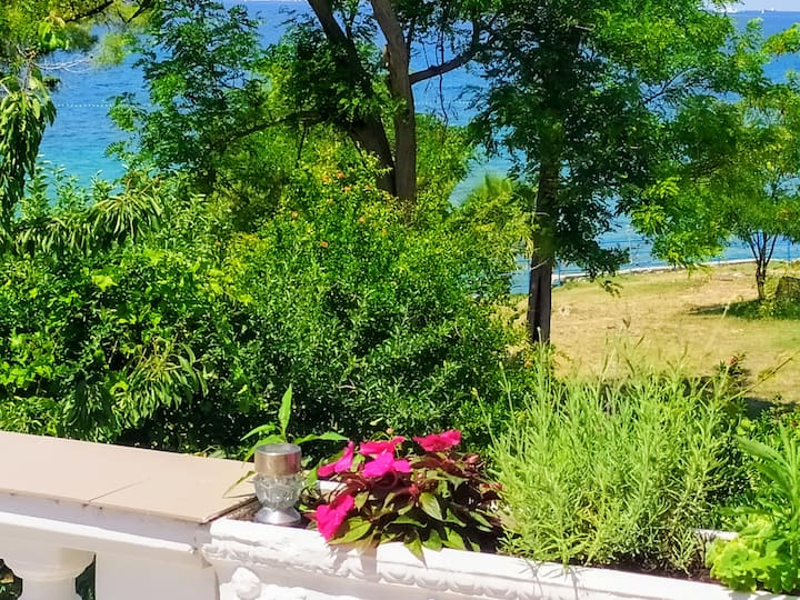 อพาร์ทเมนท์ที่มีวิวชายหาดและสวน