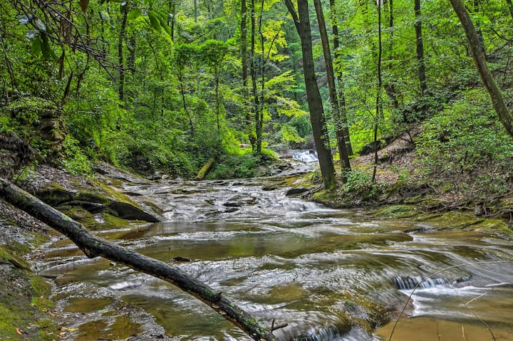 เคบินบนภูเขาที่ปรับปรุงใหม่บนพื้นที่ 20 เอเคอร์พร้อมน้ำตกขนาดใหญ่