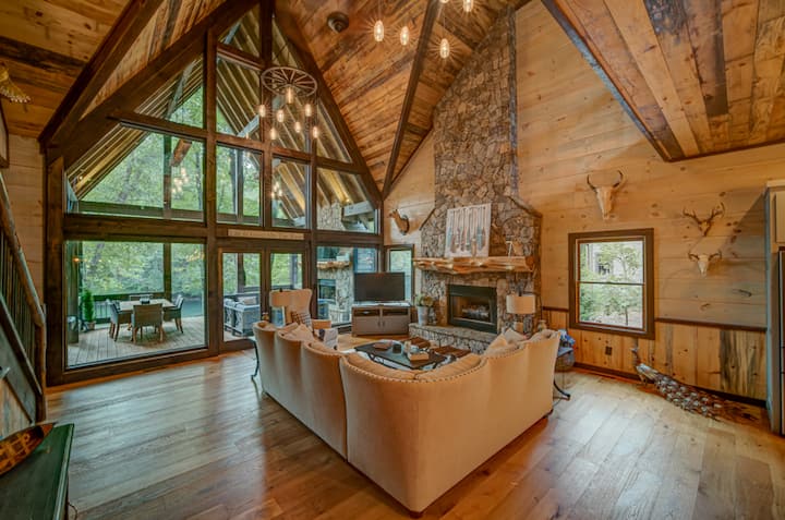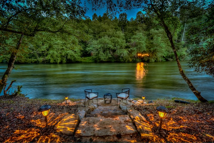 แคมป์ตกปลาท็อกโกอา | เคบิน 3 ห้องนอนแบบกำหนดเองบนแม่น้ำท็อกโกอา