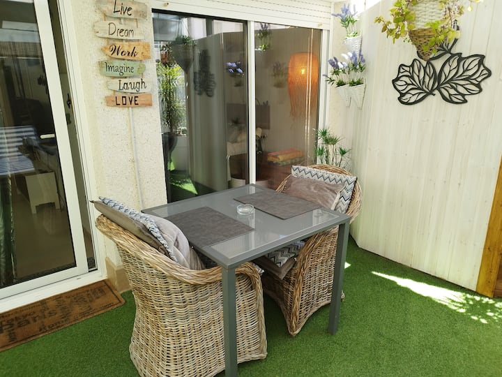 อพาร์ทเมนท์ 75 ม. ชายหาดคาลาเฟลล์ เทอร์เรซขนาดใหญ่และที่จอดรถ