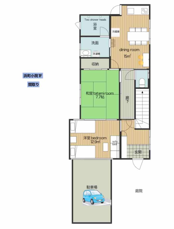 สถานีทาคามัตสึ 3 นาทีจากท่าเรือ เดี่ยวทั้งบ้านให้เช่า 3 ห้องน้ำ 3 ห้องอาบน้ำ 2 ห้องครัว เครื่องอบแห้งความจุสูง ที่จอดรถฟรี 1-2 คัน