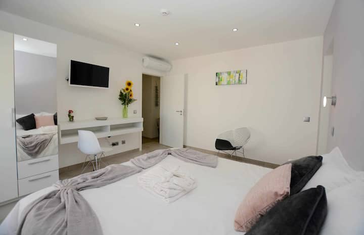 ห้องพักที่ตกแต่งอย่างหรูหราของเราได้รับการออกแบบมาเพื่อให้คุณได้พักผ่อนอย่างเต็มที่ ห้องสวีท 1 มีหน้าต่าง 2 บานที่มองเห็นถนนช่วยให้คุณดื่มด่ำกับบรรยากาศท้องถิ่น ห้องน้ำส่วนตัวเป็นอัญมณีแห่งความทันสมัยที่แท้จริงมีฝักบัวนวดด้วยพลังน้ำเพื่อฟื้นฟูร่างกายและจิตใจหลังจากแสงแดดหรือการท่องเที่ยวมาทั้งวัน เพื่อความบันเทิงของคุณคุณจะได้พบกับทีวีพลาสม่าที่ทันสมัย ตู้เย็นพร้อมให้บริการคุณเพื่อเก็บเครื่องดื่มเย็นๆและของว่างเพื่อให้แน่ใจว่ามีความเป็นอิสระสูงสุด Wi-Fi ฟรีที่มีอยู่ทั่วที่พักจะช่วยให้คุณเชื่อมต่อกับโลกได้เสมอ และเพื่อให้มั่นใจว่าจะได้รับความสะดวกสบายสูงสุดในทุกฤดูกาลเครื่องปรับอากาศจะรับประกันสภาพแวดล้อมที่เย็นสบายและน่ารื่นรมย์แม้ในวันที่อากาศร้อนที่สุดของอัลการ์ฟ