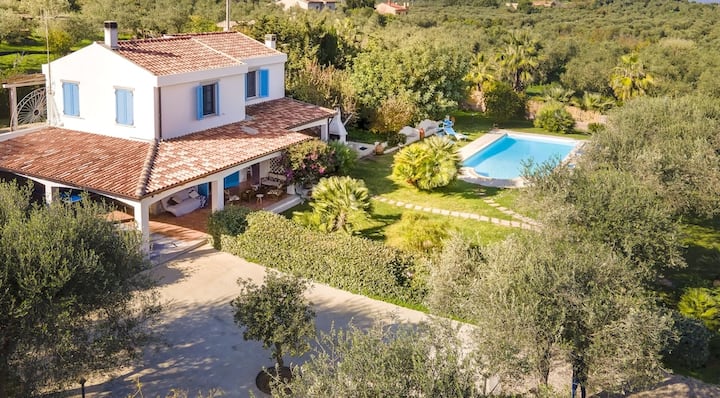 ความเป็นส่วนตัวสูงสุดในวิลล่าเดี่ยวเขียวชอุ่มแห่งนี้ตั้งอยู่บนเนินเขาในพื้นที่ Valverde ของ Alghero