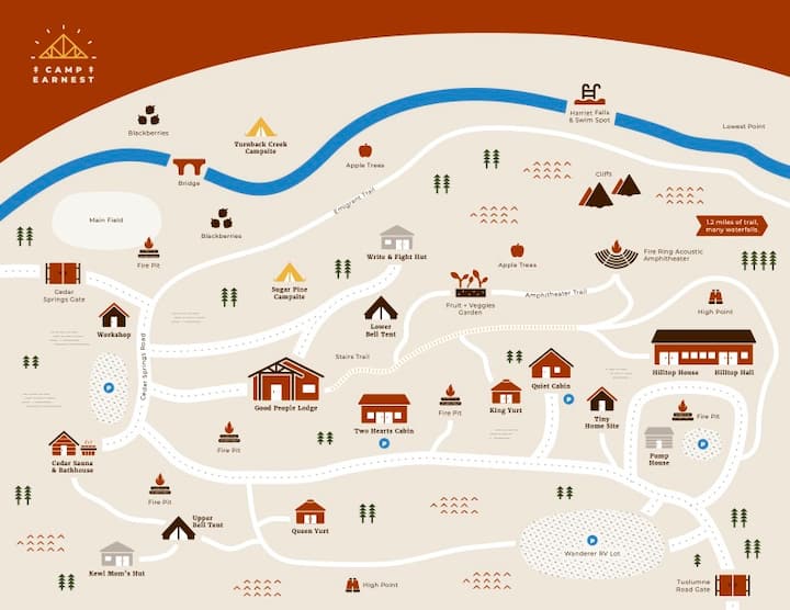 ยินดีต้อนรับสู่ Camp Earnest สถานที่พักผ่อนที่สมบูรณ์แบบใจกลางเซียร์ราส คารินและฉันดูแลที่พักนี้และก็ตื่นเต้นที่จะได้ต้อนรับคุณ