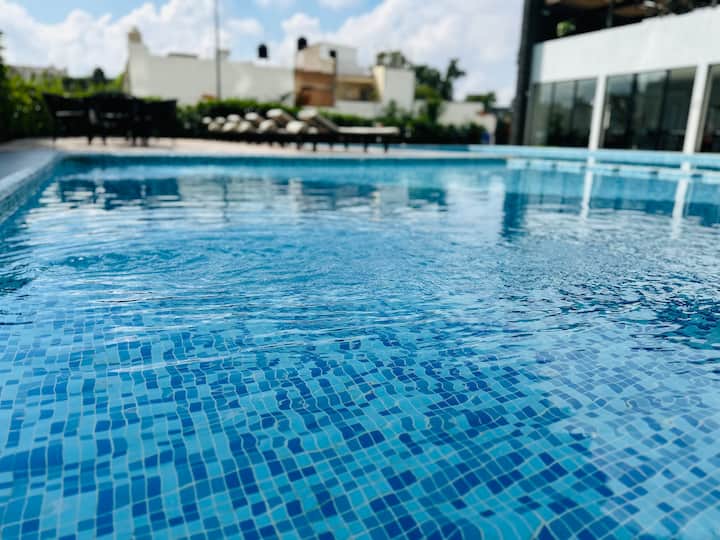 นี่เป็นหนึ่งในที่พักไม่กี่แห่งของย่านนี้ที่มีสระว่ายน้ำ